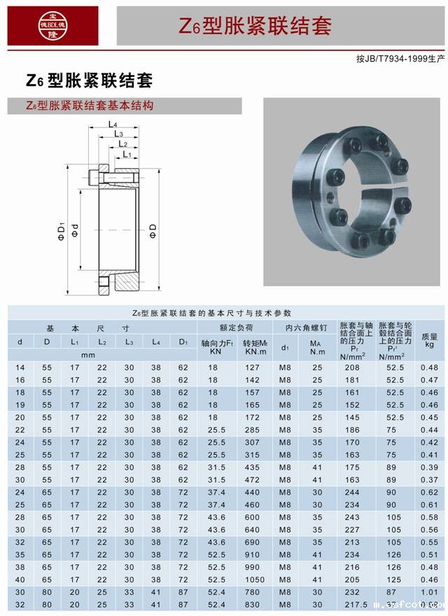 胀套的使用寿命长,强度高。胀套依靠摩擦传动,对被联结件没有键槽削弱,也无相对运动,工作中不会产生磨损。